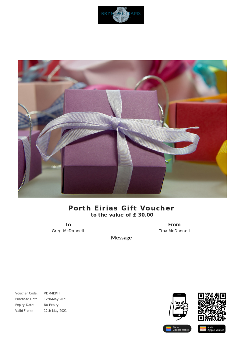Porth Eirias allows you to purchase instantly printable gift vouchers, special offers and tickets using the Voucher Connect platform.